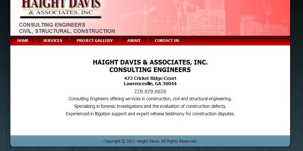 678PC created a custom wordpress theme for Haight Davis & Associates. The website shows some of their projects, services, and contact information.