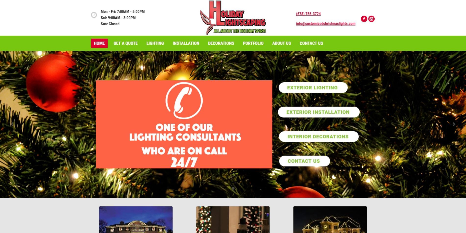 Holiday Lightscaping is a seasonal business specializing in the sales and installation of custom-fitted holiday lights for homes and businesses. Holiday Lightscaping came to 678PC as a brand-new business in search of a professional quality website featuring very specific functionality. 678PC “built a new website from the ground up”, integrating custom-written content, aesthetically pleasing and functional navigation, and a host of sales and order features within a tight timeframe to create a web presence for Holiday Lightscaping just weeks before the holiday season. Holiday Lightscaping is an excellent example of a 678PC original site with totally customized functionality and content that caters to the needs of a startup or small business.