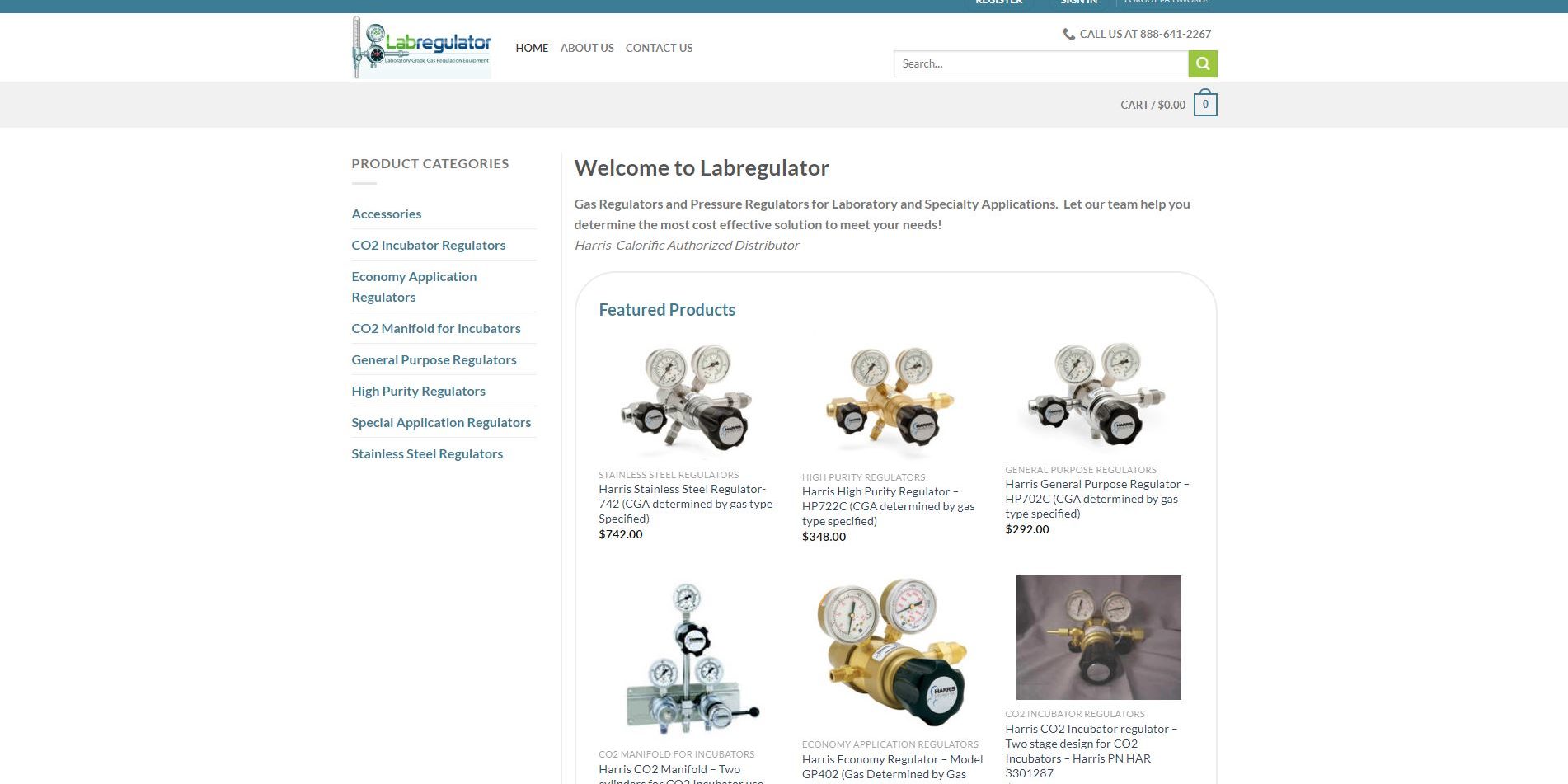 Labregulator is a gas regulator distributor primarily specializing in laboratory and niche applications. 678PC created a new site for Labregulator featuring e-commerce functionality, PayPal integration, custom contact forms, a full product catalog migration, and customized product form fields to specify customer needs during the ordering process. Labregulator is an excellent example of how 678PC can provide scalable e-commerce solutions for specialized online vendors.